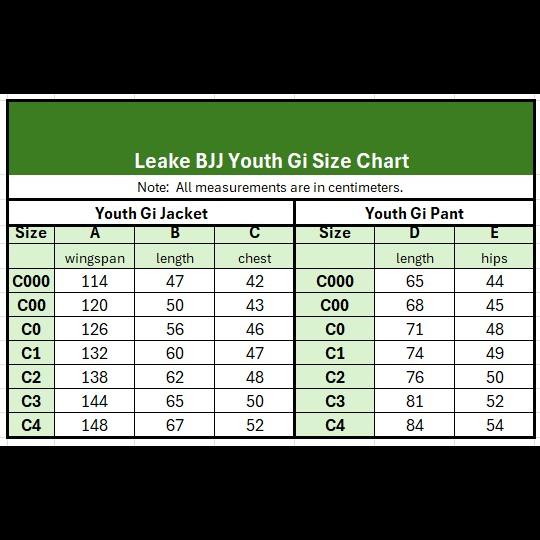 - Gi Jacket embroidered with Leake BJJ logo on the lapel and school name across both shoulders